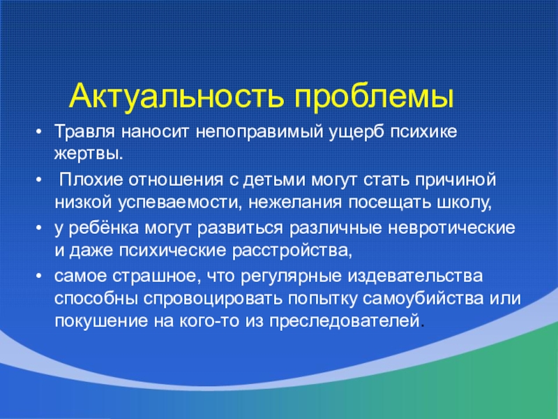 Травля наносит непоправимый ущерб психике жертвы.