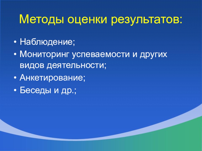 Слайд 20Методы оценки результатов: