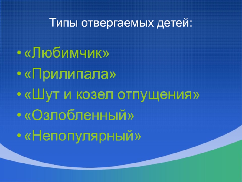 Слайд 11Типы отвергаемых детей: