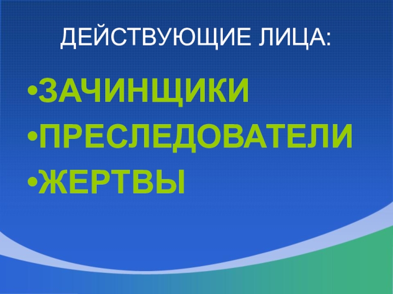 Слайд 4ДЕЙСТВУЮЩИЕ ЛИЦА: