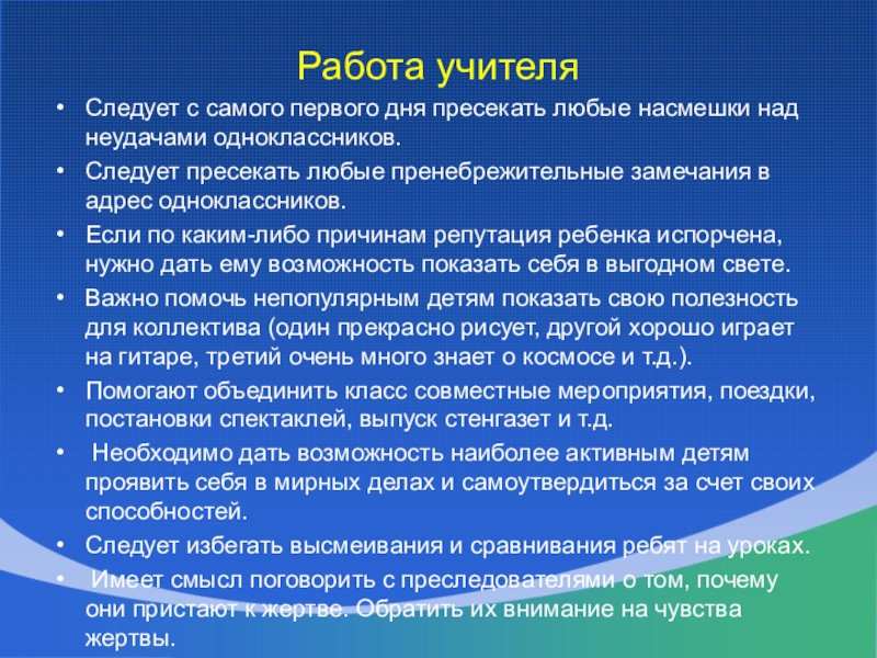 Следует пресекать любые пренебрежительные замечания в адрес одноклассников.