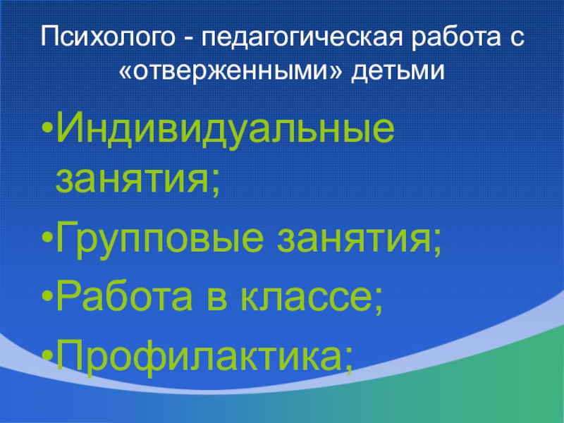 Слайд 21Психолого - педагогическая работа с «отверженными» детьми