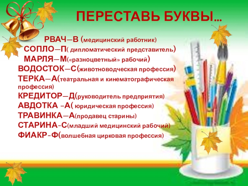 Слайд 13ПЕРЕСТАВЬ БУКВЫ…