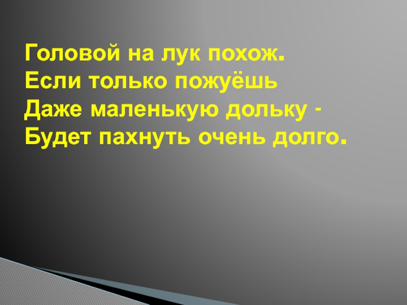 Слайд 19Головой на лук похож.