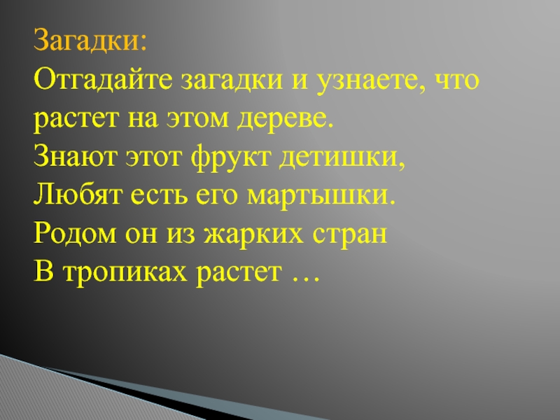 Отгадайте загадки и узнаете, что растет на этом дереве.