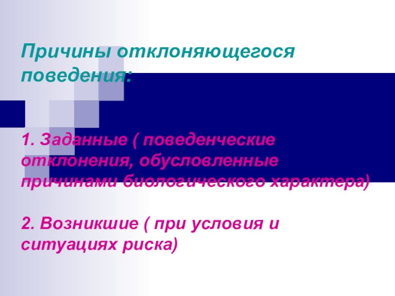 1. Заданные ( поведенческие отклонения, обусловленные причинами биологического характера)