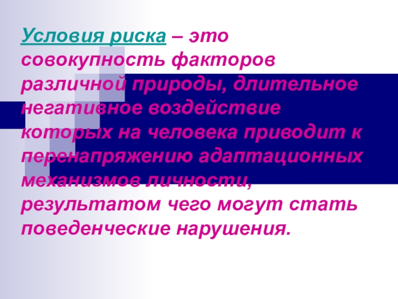 Слайд 11Условия риска – это совокупность факторов различной природы, длительное негативное воздействие