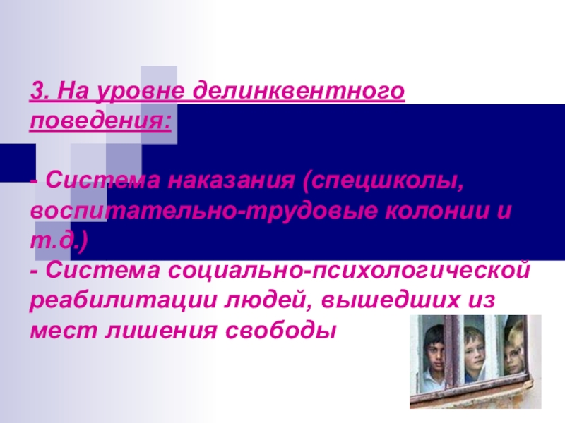 - Система наказания (спецшколы, воспитательно-трудовые колонии и