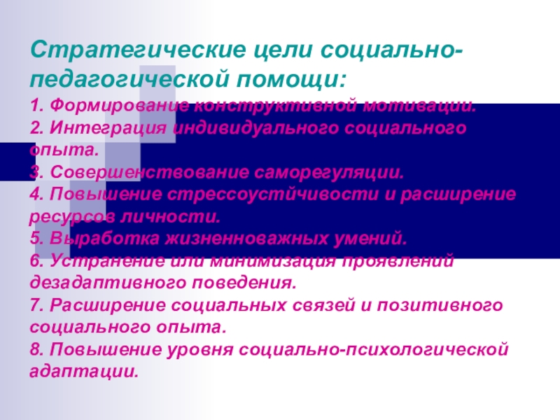 Слайд 25Стратегические цели социально-педагогической помощи: