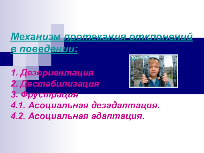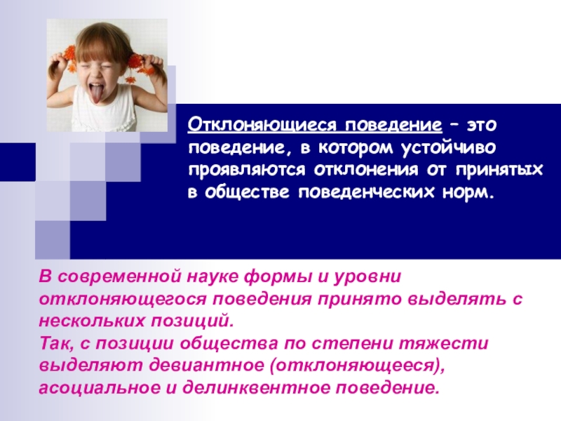 Слайд 2Отклоняющиеся поведение – это поведение, в котором устойчиво проявляются отклонения от