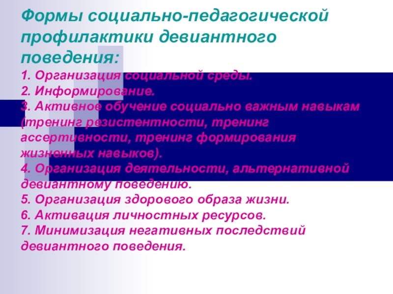 Слайд 24Формы социально-педагогической профилактики девиантного поведения: