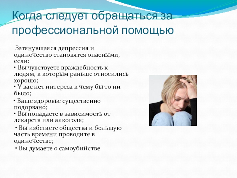 Слайд 13Когда следует обращаться за профессиональной помощью
