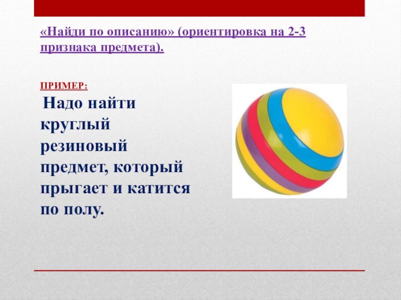 «Найди по описанию» (ориентировка на 2-3 признака предмета).