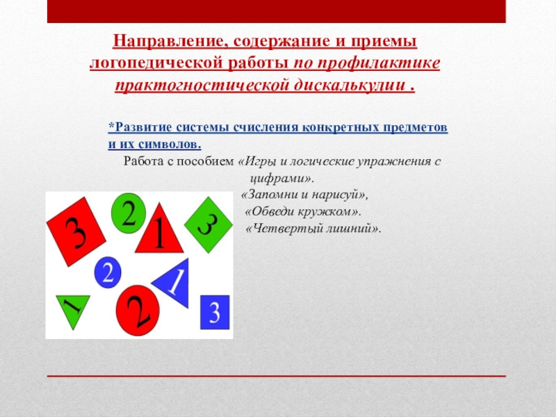 Направление, содержание и приемы логопедической работы по профилактике практогностической дискалькулии .
