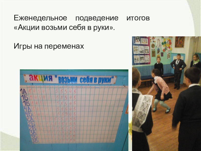 Слайд 17Еженедельное подведение итогов «Акции возьми себя в руки».