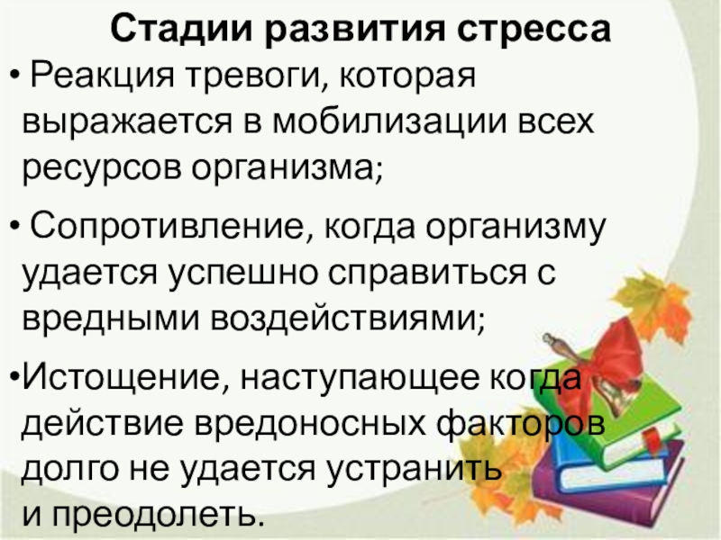 Психологический стресс вызывают факторы, действующие своим сигнальным значением, например, когда школьника обманули, обидели, угрожали физически или морально, если он испытывает сильные эмоциональные перегрузки .