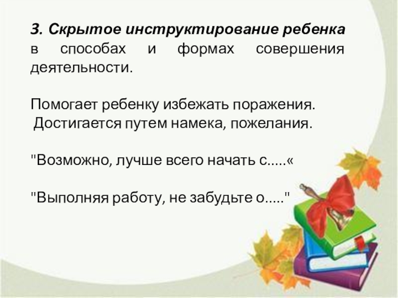 Слайд 93. Скрытое инструктирование ребенка в способах и формах совершения деятельности.