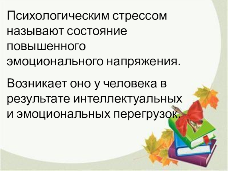 Слайд 2Психологическим стрессом называют состояние повышенного эмоционального напряжения.