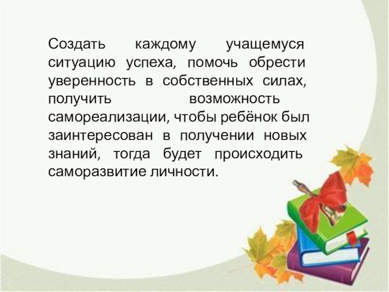 Слайд 6Создать каждому учащемуся ситуацию успеха, помочь обрести уверенность в собственных силах,