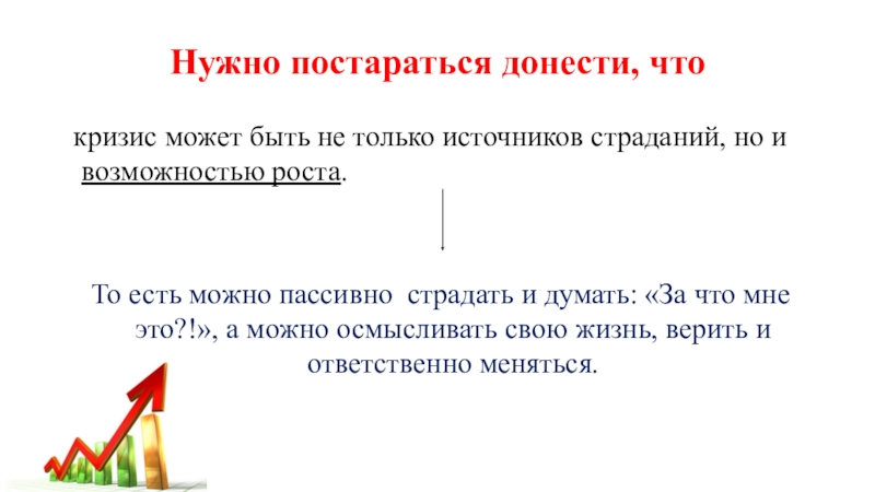 То есть можно пассивно страдать и думать: «За что мне это?!», а можно осмысливать свою жизнь, верить и ответственно меняться.