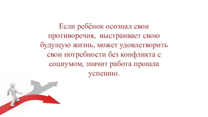 Если ребёнок осознал свои противоречия, выстраивает свою будущую жизнь, может удовлетворить