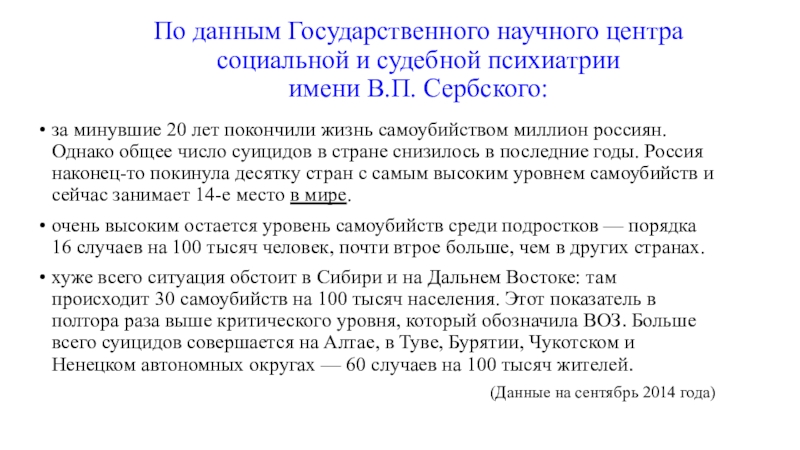 Слайд 3По данным Государственного научного центра социальной и судебной психиатрии