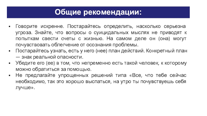 о суицидальных мыслях не приводят к попыткам свести счеты с жизнью. На самом деле он (она) могут почувствовать облегчение от осознания проблемы.