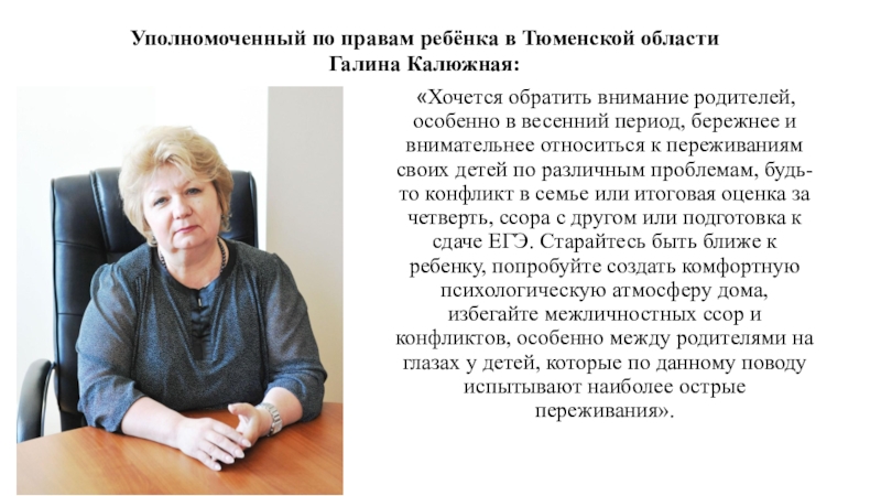 и внимательнее относиться к переживаниям своих детей по различным проблемам, будь- то конфликт в семье или итоговая оценка за четверть, ссора с другом или подготовка к сдаче ЕГЭ. Старайтесь быть ближе к ребенку, попробуйте создать комфортную психологическую атмосферу дома, избегайте межличностных ссор и конфликтов, особенно между родителями на глазах у детей, которые по данному поводу испытывают наиболее острые переживания».