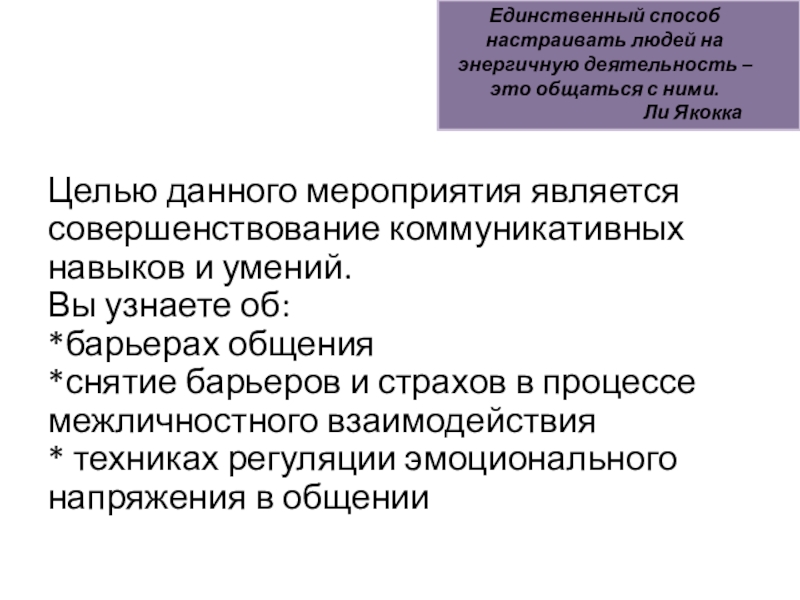 Единственный способ настраивать людей на энергичную деятельность – это общаться с ними.