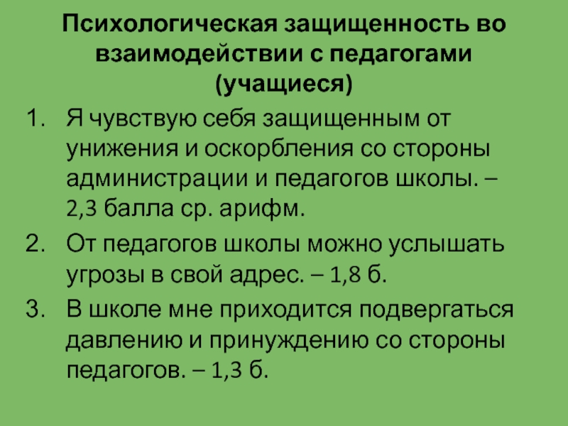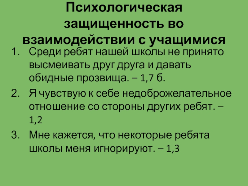 Слайд 14Психологическая защищенность во взаимодействии с учащимися