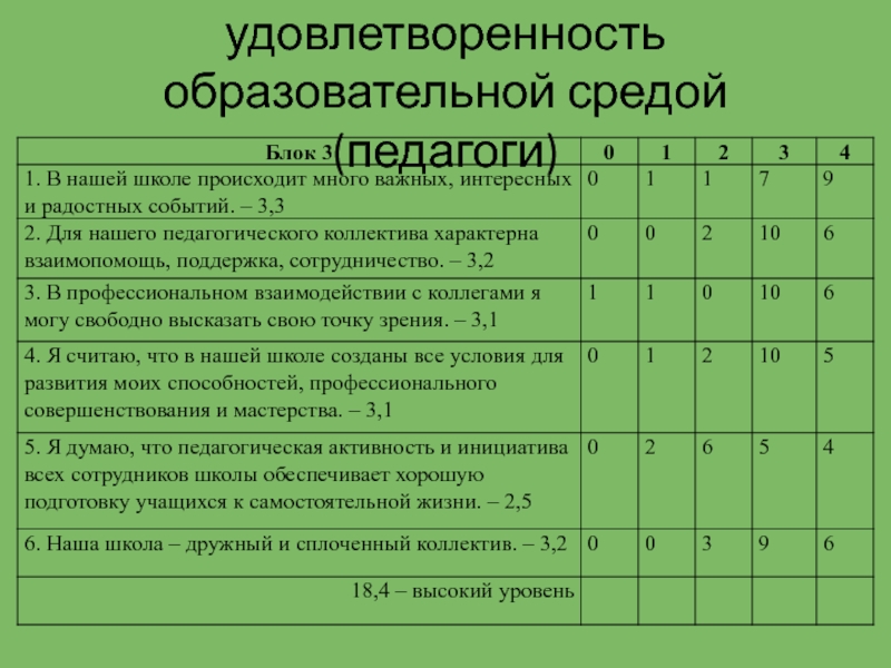 Слайд 23Психологическая удовлетворенность образовательной средой (педагоги)