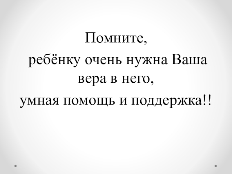 Помните, ребёнку очень нужна Ваша вера в него, умная помощь и поддержка!!