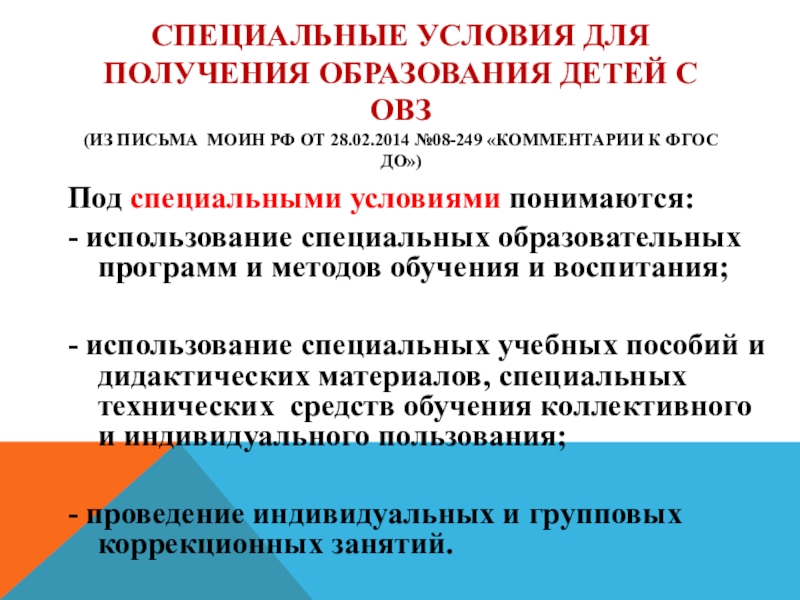 Слайд 20Специальные условия для получения образования детей с ОВЗ