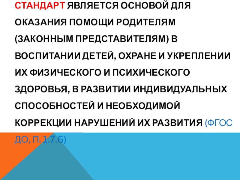 Слайд 16Стандарт является основой для оказания помощи родителям (законным представителям) в воспитании