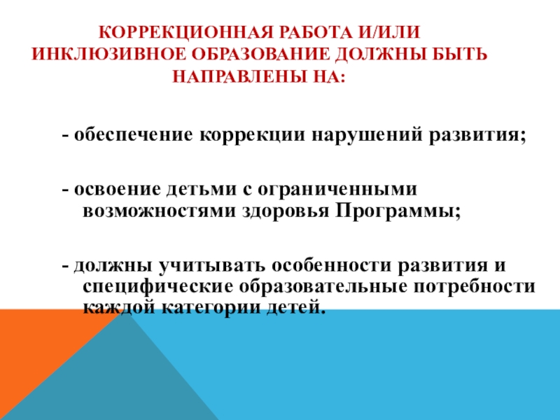 - должны учитывать особенности развития и специфические образовательные потребности каждой категории детей.