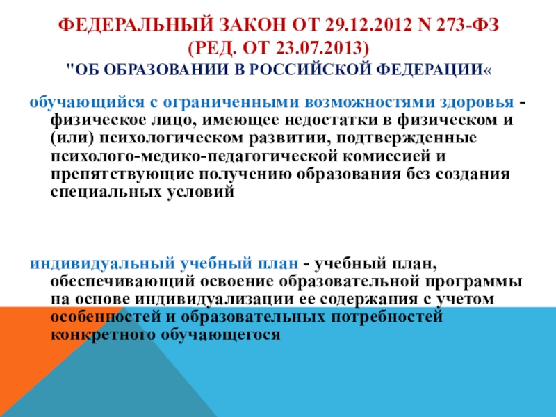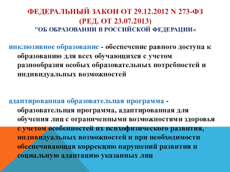 Слайд 6Федеральный закон от 29.12.2012 N 273-ФЗ