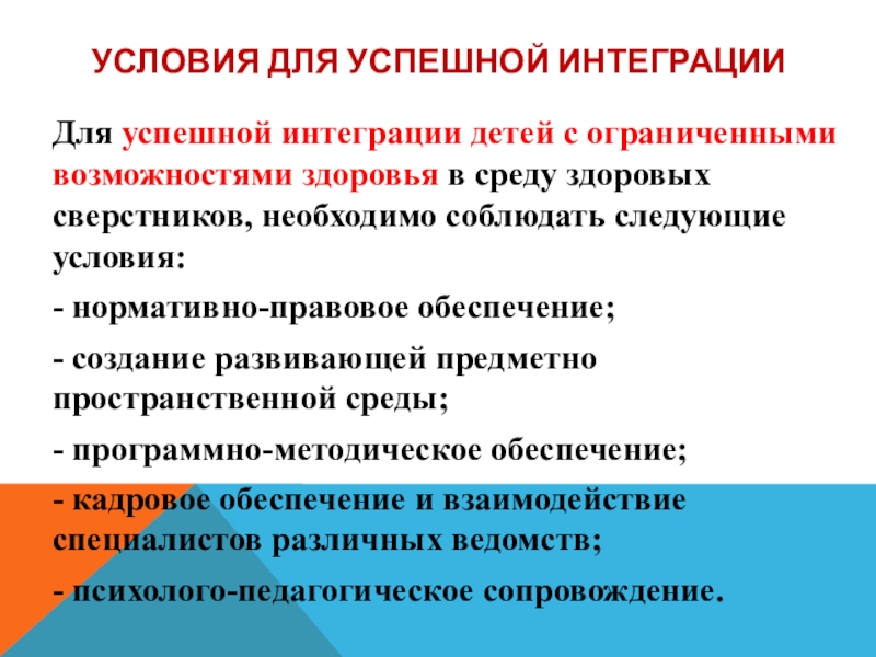 в среду здоровых сверстников, необходимо соблюдать следующие условия: