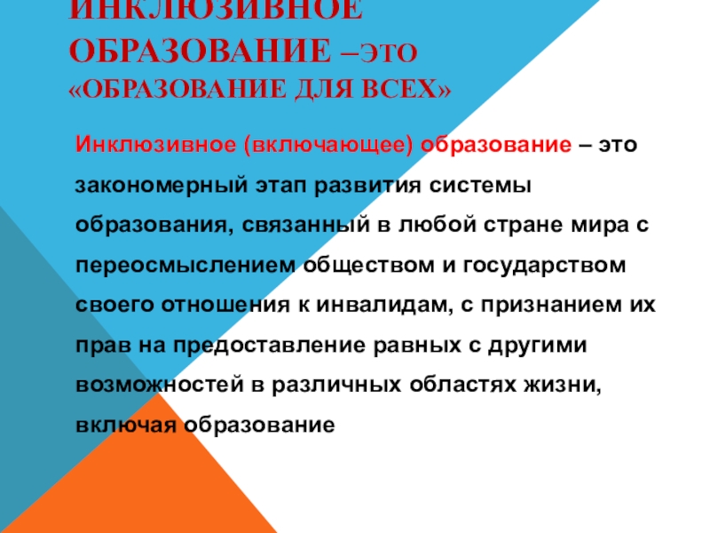 Слайд 2ИНКЛЮЗИВНОЕ ОБРАЗОВАНИЕ –ЭТО «ОБРАЗОВАНИЕ ДЛЯ ВСЕХ»