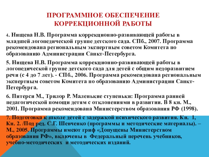 4. Нищева Н.В. Программа коррекционно-развивающей работы в младшей