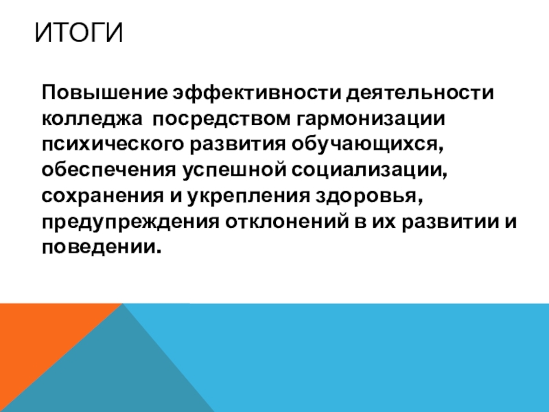 Повышение эффективности деятельности колледжа посредством гармонизации психического развития обучающихся, обеспечения успешной