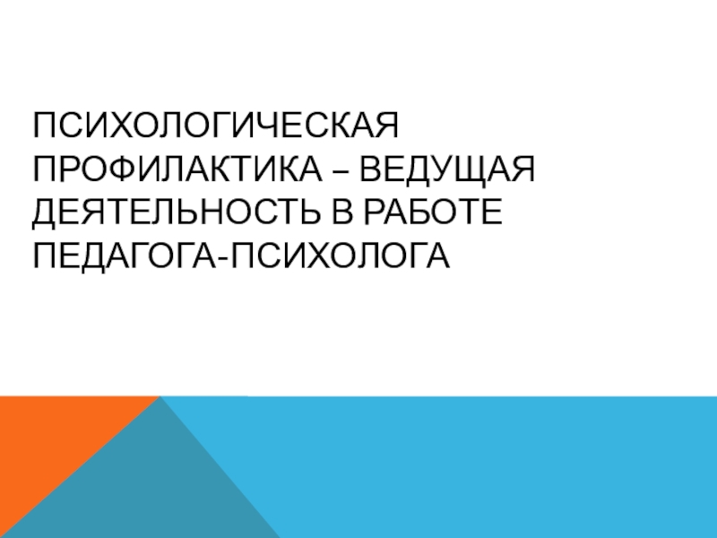 Слайд 3Психологическая профилактика – ведущая деятельность в работе педагога-психолога