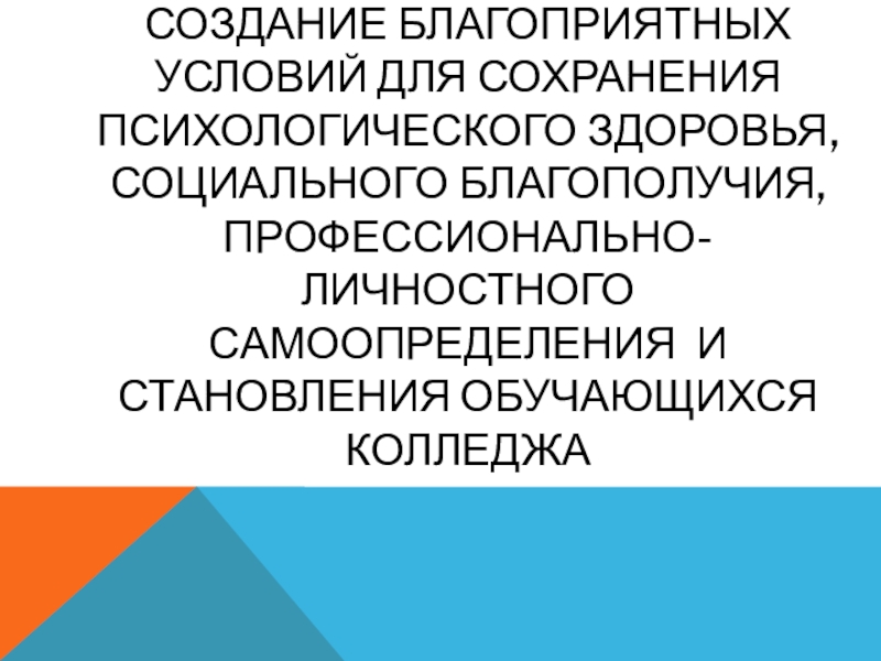 Слайд 2создание благоприятных условий для сохранения психологического здоровья, социального благополучия, профессионально-личностного самоопределения