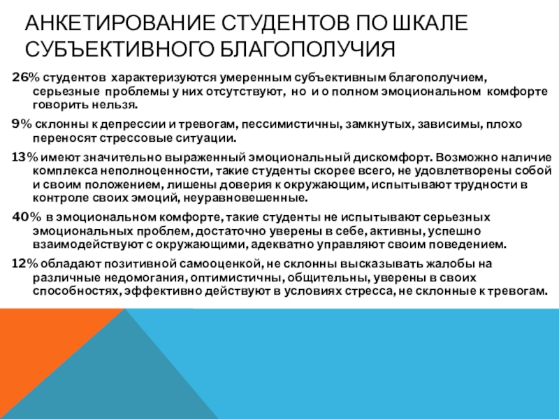 Слайд 6Анкетирование студентов по шкале субъективного благополучия