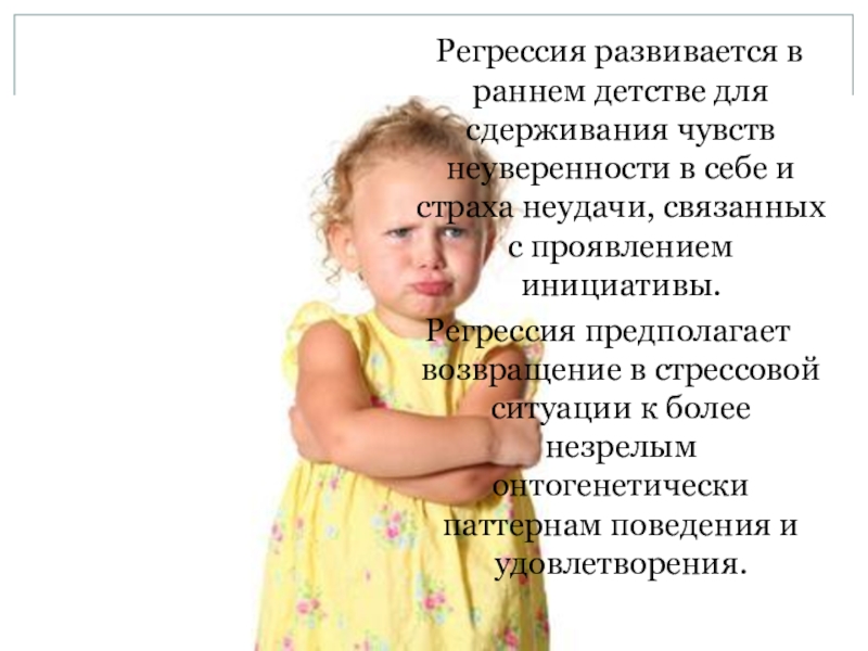 Слайд 2 Регрессия развивается в раннем детстве для сдерживания чувств неуверенности