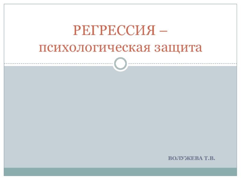 Волужева Т.В.РЕГРЕССИЯ – психологическая защита