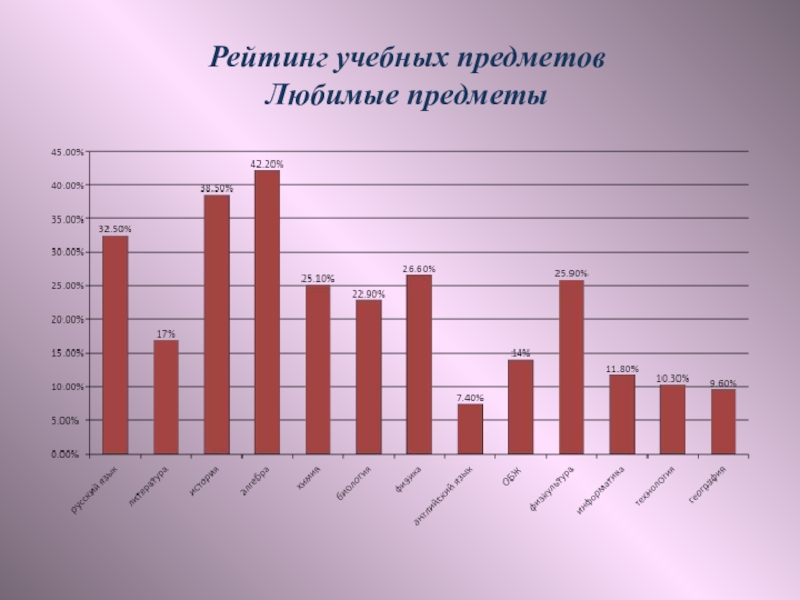 Слайд 7Рейтинг учебных предметов Любимые предметы