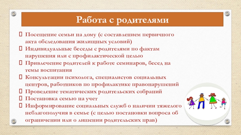 Информирование социальных служб о наличии тяжелого неблагополучия в семье (с целью постановки вопроса об ограничении или о лишении родительских прав)