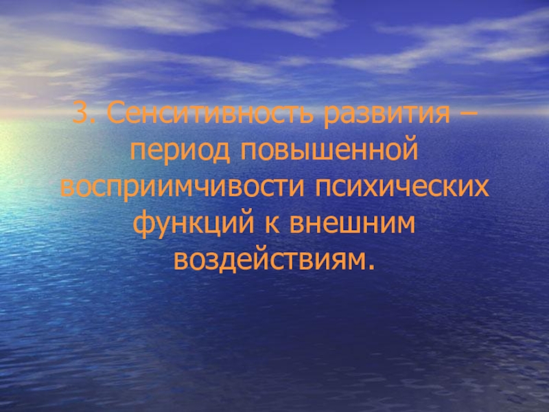 Слайд 223. Сенситивность развития – период повышенной восприимчивости психических функций к внешним