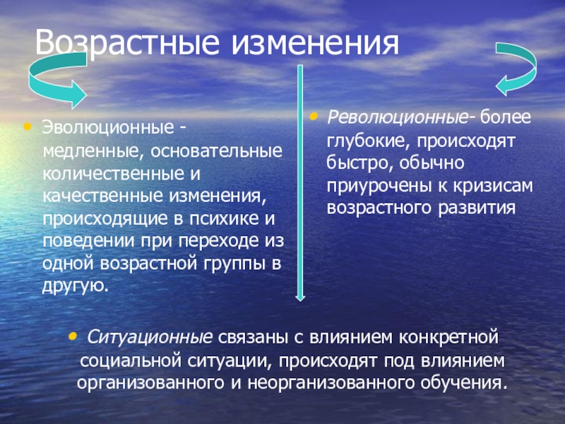 Революционные- более глубокие, происходят быстро, обычно приурочены к кризисам возрастного развития