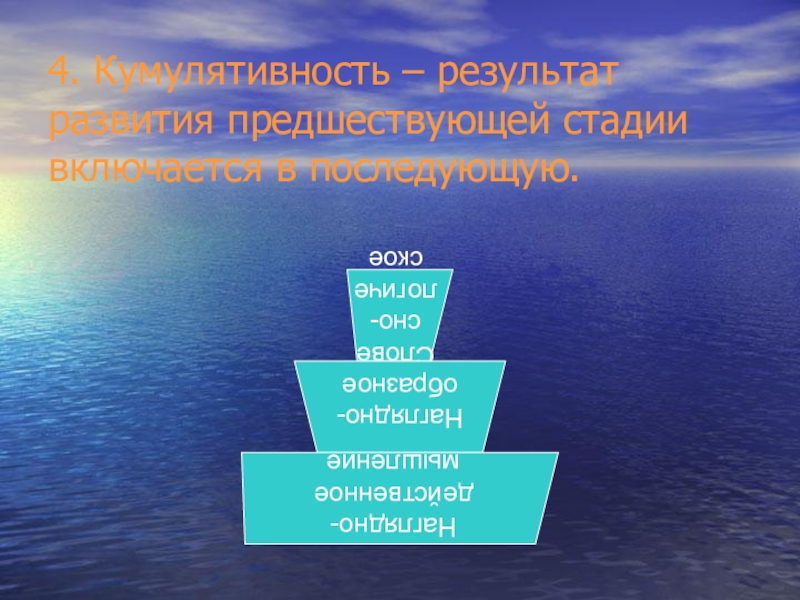 Слайд 234. Кумулятивность – результат развития предшествующей стадии включается в последующую.